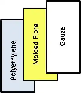 - Layer the waterproof polyethylene, absorbent fibres, and gauze. Ensure that the fibres are centred within the boundaries of polyethylene/gauze sheets.
