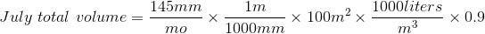 | K | Conversion | 7.48 gal/ft3 or SI | You can also combine the 1ft/12in conversion for the precipitation data here. |