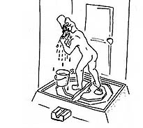 - Waste water from bathing rinses urine away, minimizing stink and use of flush water.