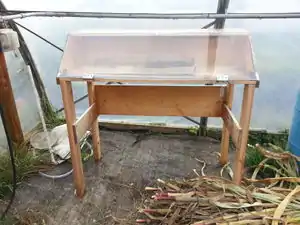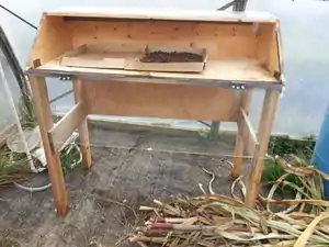 The trays must be permeable in order to allow for both good airflow and to allow any excess moisture to easily escape from the materials being dried. Some sources advocate the use of readymade plastic trays [11], others suggest custom-building the trays in order to allow for optimal circulation and permeability. [8][12]