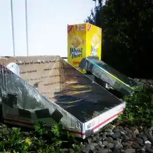 Both prototypes were constructed from household materials: cardboard boxes formed the drying chambers and solar collectors, plastic food wrap served as the solar window, and our solar absorbers were black plastic garbage bags. During testing, it became apparent that the tower dryer couldn't raise the internal temperature to a significant degree over ambient, whereas our simple box dryer displayed an impressive temperature increase (over 120 degrees Fahrenheit in direct sunlight).