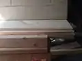 The top piece of the dehydrator box was simple to attach: after some minor trimming in order to account for a small amount of warp in one of the side panels, we used one of our 4-foot pieces of pine and secured it at the top of the side and back pieces using wood screws. However, due to the necessary 40-degree angle of the side pieces, we had a small "lip" that jutted out past the sloped front face of our dehydrator, which needed to be eliminated if our Plexiglass were to lay flush with the box edges. We were able to borrow a hand planer from one of Justin's neighbors, and quickly managed to whittle the lip down to be flush with the sloped front edge.