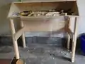 Side view of the work-in-progress box and legs.
