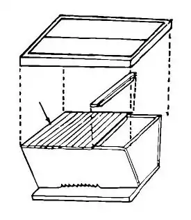 Frame hives must be constructed with precision. Frames are contained within boxes and each hive consists of a number of boxes placed on top of each other. Often a 'queen excluder', a metal grid with holes that allows only the smaller worker bees to pass through, is used to isolate the brood in the bottom-most boxes. The rest of the boxes will contain only honey.