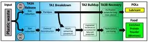 BioPROTEIN (Biological Plastic Reuse by Olefin and Ester Transforming Engineered Isolates and Natural Consortia), is a four year project starting in 2020 that aims to refine a method of chemical and high heat (pyrolysis) deconstruction of plastic waste that enables it to be converted into protein powder and lubricants.