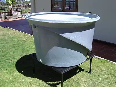 Soldier Grub bioconversion units are also called grub composters. A commercially available grub composter is called the BioPod™ and is developed and trademarked by ESR International, LLC. A nominal 2-foot diameter BioPod™ Classic and the newly designed BioPod™ Plus can process over a metric ton of putrescent waste per year. A nominal 4-foot diameter ProtaPod™, weighing about 40 lbs (18 kg), can process well over five metric tons of putrescent waste per year. Note that the Soldier Grubs are totally self-harvesting. They abandon the waste only when they have reached their final mature prepupal stage, and they crawl out of the waste and into a collection bucket without any mechanical or human intervention.