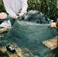 Now that the sand mold is finished and covered you are ready to construct the first layer (the dense layer). This layer is called the dense layer because a good portion of it is made up of sand. For our dense layer we used approximately a 2:1 sand/clay ratio, but we had to add a little more sand until the right consistency was found. The reason we had to add more sand was because the clay we were using was extremely wet (we got it out of a trough filled with water and clay).
