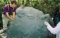 To mix the dense layer we used 5-gallon buckets for measuring. We found that 1 bucket of sand worked pretty well with a 1/2 bucket of clay. A good rule when mixing your dense layer is that you want it to feel gritty and kind of "crunchy" sounding when squeezed in your hand. A good way to test your dense layer is to ball it up in your hand, toss it about a foot in the air, and let it fall back to your hand. If it crumbles apart, it has too much sand. To remedy this add a little clay. If it deforms and flattens out, it needs more sand. The ideal consistency would be for it to hold its ball shape and not crumble apart. To apply this layer all you need to do is to begin adding the material around the perimeter of your sand mold and work your way up. A good width for this layer is about hand-width, which means roughly about 3-4 inches.