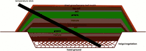 - After 3 days take out the long stick to see if decomposition has started. The stick should be noticeably warmer at the centre of the stick. If not, then add more water. It may be too dry.