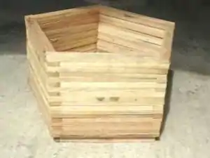 I am very excited to be posting directions for building your very own home vermiculture bin! The methods employed will produce a bin appropriate for a household of 3-5 people and should last a number of years if constructed properly. There of course are many types of bin designs out there and I wanted the creative opportunity to design my own. In looking for ideas in a gardening magazine, I noticed a pentagon shaped planter for gardens whose shape I really liked. A pentagon is also practical because compost is less likely to get stuck in the corners as often happens in normal square shaped boxes, preventing the organic materials from cycling properly.