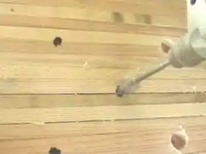 - Fig 11: Use hand drill to drill airation holes, five on each side of bottom section of verm bin. This is actually correcting the error I made of not cutting airation holes with each successive pentagon layer (see common errors to aviod section).