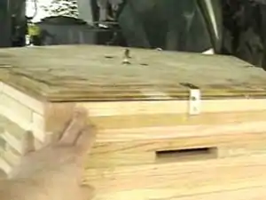 The bottom of each bin section is finished with wire mesh to keep the compost in place. The holes of the wire mesh are large enough to allow worms and microbes to enter the system and speed up decomposition. The top is simple plywood cut to size with a brass handle and L-brackets to keep the lid in place. The bin was lastly finished with natural organic linseed oil as a sealer for endurance in the elements and general durability.