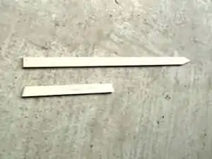 - Fig 3: All stakes should be cut in half and the ends of all stakes angled at 108 degrees.