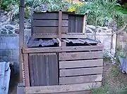 Multi-stage bins- Several cells contain compost in different stages of decomposition. This system is the most forgiving (almost any material can go in the bins) and of conventional systems-meaning not vermiculture- is able to process the most compost in the shortest time. |