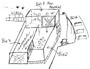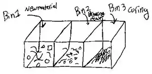 Stand Alone System- This desgin can be made very easily with palettes or wood scraps. Block bins as pictured above are also appropriate. |
