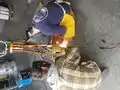 To improve the functionality of the MEOW our group decided to add on a third bike to the system to add more power. First, our group acquired a washing machine generator. To attach this to the bike we had to weld on a rectangular metal tube onto the bike and then weld on a large rectangular metal bracket with a bolt for the generator to be placed on.