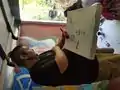 Here's a lovely CCATer in action riding the bike to power the activities going on while the MEOW is being painted.