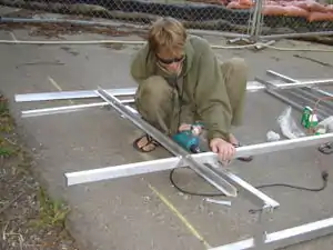 One of the more challenging design issues was securing all the angled pieces to each other. In order to do this we need to drill many holes, and all bolts and nuts used needed to be weatherized with an anti-seizing agent. We also needed to make many difficult precise cuts of our own to get our desired lengths and sizes of pieces we wished to use. Safety goggles, gloves, and multiple securing clamps are definitely recommended for anyone attempting to cut lots of aluminum at home. More than one (minor) injury was incurred in this phase and demonstrates our true dedication to appropriate technology!