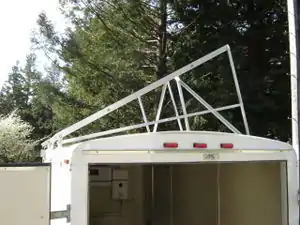 We wanted the solar panels to sit above the roof since additional panels may be added to one side of the trailer in the future. However, the trailer has been plagued with leaks, so we decided not to mount the racks to the roof itself. Mounting to the roof, in a worst case scenario could create more leaks and in a best case scenario would create additional maintenance because someone would have to re-caulk the mounts occasionally to prevent leaks. We decided to attach aluminum supports to the side beams of the trailer and attach the rack to those supports.