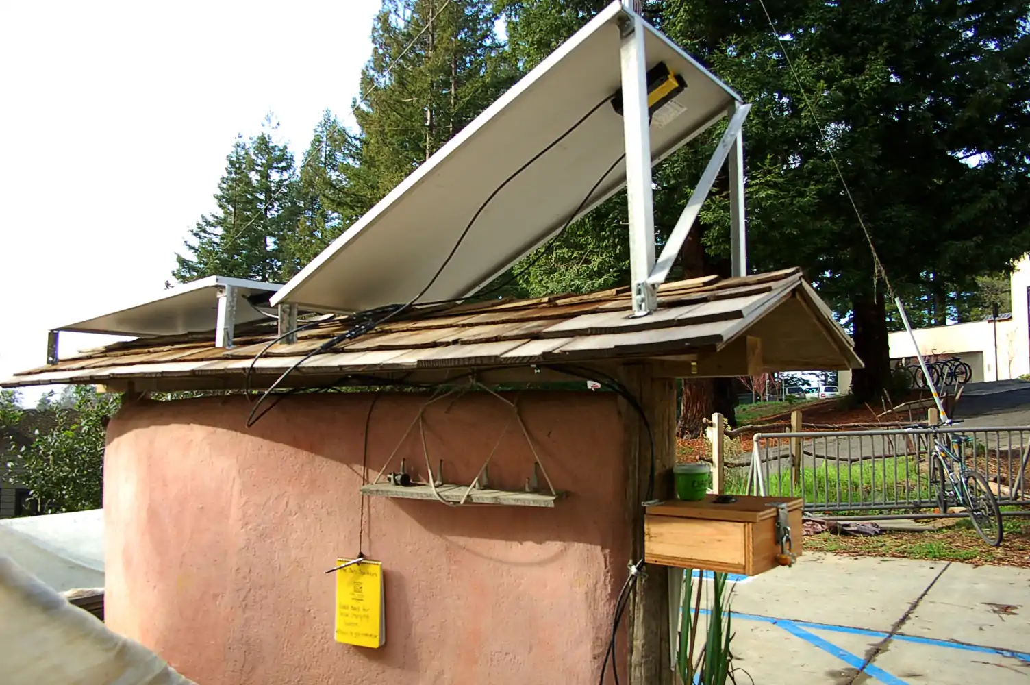 The Campus Center of Appropriate Technology is a demonstration house located on the Humboldt State University campus, Arcata, California that is a resource for students and faculty. CCAT has many different technologies on display such as: solar panels, rainwater catchment, organic gardens, a greywater marsh, and an experimental composting toilet, among other things. These projects are on display as educational tools to the community and information is provided through CCAT/Appropedia on how to recreate these technologies on your own. The Solar Charging Station at CCAT will align with the mission of CCAT to provide education and resources to the community, by clearly expressing how off-grid solar works, while being functional for cell phone/laptop charging.