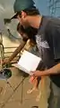 Kevin checking out the panels on the CCAT kiosk
