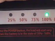 - Battery 75% indicator: Constant On:(When the voltage of the battery is higher than 12.6V, lower than 13.8V)