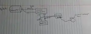 For the Spring 2015 Engineering 305 class at HSU, the bike powered tools team's goal is to make a bicycle powered system to provide an outlet primarily for the use of power tools in the Campus Center for Appropriate Technology (CCAT) tool shed. Currently, CCAT has to use a few extension cords that draw energy from the grid to run their power tools. The bicycle power system uses the energy provided by the rider to charge a battery to be used for power tools. Since a human can usually maintain around 100 Watts of power output for around an hour,[1] a battery is needed to be able to power tools such as a chop saw that needs between 1080-1200 W of power to run.[2] Ultimately, the stationary bike will turn a motor that will charge a battery that will have power tools plugged into an inverter. This bike powered tool station is an appropriate technology for generating electricity at CCAT. The project will help CCAT achieve net zero energy use by creating renewable energy on site for power tools.