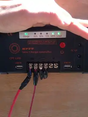 - Make sure the charge controller has the 100% or 75% lights on (if not, jump to step 6).