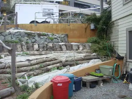 This Appropedia page was created for two reasons: (1) to describe the current gravity fed drip irrigation system located at the Humboldt State University Campus Center of Appropriate Technology in Arcata, California and (2) to suggest recommendations that would increase the performance of the current system. This page was created as part of the class requirements for Engineering 115 Fall 2009 taught by Dr. Dustin Poppendieck. Please note that another CCAT gravity fed drip irrigation page exists. The CCAT Gravity Fed Drip Irrigation link on Appropedia describes the original system construction by a Engineering student in 2008 . The existing system is pictured in Figure 1.