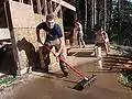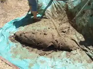 4. The "burrito" technique is the best way to mix on a tarp. After you stomp your mix up grab two sides of the tarp from the inside and pull all the cob towards you to roll it up into a burrito shape. Make sure you pull from the inside to save your back.
