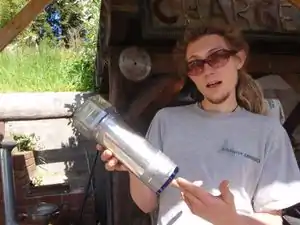Wrapping the bottle in flashing, next comes the duct tape to hold it all together