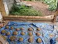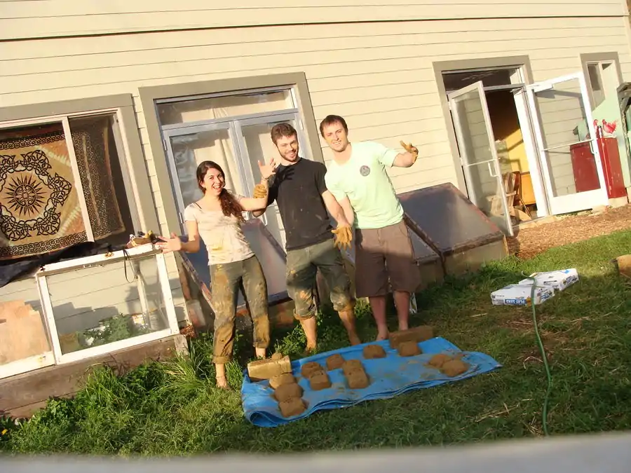 After you do a shake test, you can start to gauge how much sand to clay you will need in your cob mixture. We made some test bricks using a few different ratios to see which one was the strongest, testing their strength by throwing them on the ground after they dried. We did 1:1 sand:clay, 2:1 sand:clay and so on. The 2:1 ratio worked best for our soil.