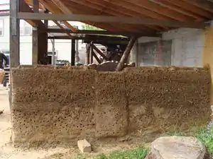 Cob is fireproof, so fireplaces, stoves, and chimneys can be shaped with it. Cob beds and benches can be placed near the stoves and frieplaces to be warmed. Usually the walls of a cob home are whitewashed or stuccoed over. This undoubtedly helps to preserve them, protecting against any harsh winds. Both the composition of cob and the positioning of the house/cob structure affect the electricity consumed in the structure. It is more energy efficient to position the house so that it faces the south(in the northern hemisphere)and north(in the southern hemisphere), with big windows in this direction. This way the big south/north facing windows and solar panels, if employed, can capture sunlight. After sunlight has been captured, the thermal mass of the cob can absorb and make use of the solar energy. In similar conditions of this study, stabilization by cement or lime have been found to be inadequate. First, the stabilization does not employ the recycling of the material, which can be detrimental to the environment. In addition, the use of cement or lime may not be economical viable or easily available in some countries or regions. That is why the development of new suitable tests to evaluate the feasibility of rammed earth appropriate for different climatic conditions is very important in deciding which type of stabilization is necessary. A particular method called stereo-photogrammetry, used to measure the erosion of rammed earth walls, may also help to calibrate more pertinent laboratory testing to assess the durability of rammed earth walls.