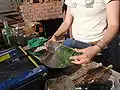 Our idea to put glass bottles in the wall includes incorporating each bottle into a tree design to allow light to shine into the green shed. To allow for maximum light per bottle they will be cut off at a wide cross section and secure them open side to open side, effectively making a glass cylinder. We then wrap the bottles in aluminum flashing and secure it with duct tape. We also needed to scrape each bottle clean of its label to allow for maximum light to go through the bottle into the shed. This was done in the past at CCAT, though the example is no longer in existence, the following appropedia page outlines a project very similar to ours. https://www.appropedia.org/Cob_and_Glass_Bottle_Wall_at_CCAT.