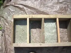 Next to test is the paper-crete mixture. The first test brick was made with a 1:2:1 ratio of paper to cement to water. This made a very soupy mixture that took weeks to dry, but, when it did it was as hard as concrete. After about 6 test mixtures the final ratio that seemed suitable was 3:2:3:1 of paper:Cement:Water:Sand. The use of less water and additive of sand made the bricks shrink less during drying and dry faster. The sand also increases thermal mass and helps with fire resistance. The resulting bricks (shown drying in a window to the right) dried solid like a very hard paper-mache and were also a lot lighter in weight than there would be concrete counterparts. The proportions that I used were what seemed appropriate for the Arcata area. More standard and researched recipes for paper-crete can be found from the Links and References at the bottom of this page or at Paper-crete Block Starter.