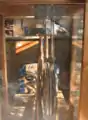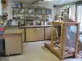 The pedal powered drillpress was displayed in the pedal power lab located in the CCAT basement workshop. It is now displayed in the garage of CCAT's temporary office building.
