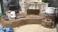 | 4/15 - 4/21 | Bench Foundation and Straw Slip | Mortar red bricks into framework for the outline of the bench. Apply insulating buffer layer against existing structure and ground exposure (clay-straw slip mixture). |