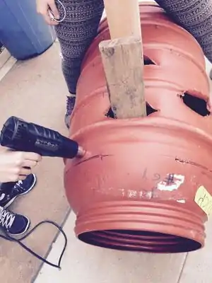 - Using a tool that heats the plastic it was added a wood inside the holes in the barrel,