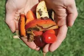 Composting is a process in which organic material is used to create a good source of nutrients for plant growth. Basically, microorganisms decompose organic matter into molecules that plants can use for their metabolism. Good compost has a good ratio of carbon and nitrogen. A good carbon (C) source comes from vegetables, and nitrogen (N) is mostly present in animals waste. A good C/N relation for composting is between 20 and 30 (for every 2 or 3 parts of carbon there is one of nitrogen). In a composting process it is necessary to have organic matter, minerals, water, microorganisms, and oxygen. The process will generate heat, CO2, water, and the finished compost.[14]