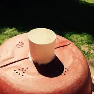 Fixing the pipe - To add soil in the barril. Do not add inside the pipe.
