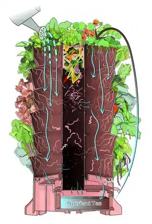 Everytime you water the plants, part of the water will drain in the bottom. This water is called worm tea, it is filled with nutrients and it can be pour back in the leaves of the plants, which are able to extract the nutrients in site.