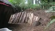 Logs are a popular material to use for retaining walls. Their intrinsic strength and durability make them appropriate resources for retaining large amounts of earth. Their natural aesthetic can add visual appeal to the landscape. An existing vertical log retaining wall at CCAT served as inspiration for our wall.[3]