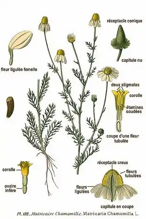 Chamomile is a flowering plant in the daisy family. It is often used for medicinal purposes like general aches, stomach pains, skin conditions, sleeplessness and headaches.