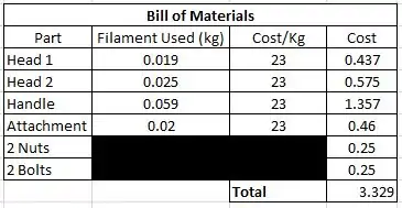 - Cost of 3D Garden Tool with 2 heads: 3.30$
