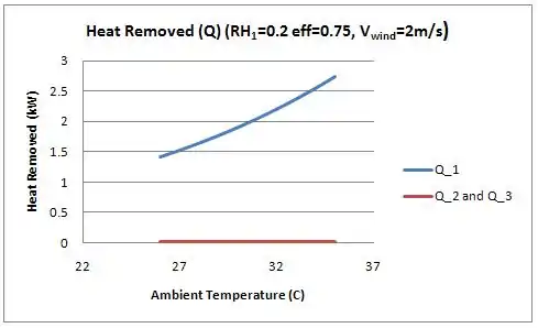 The rate of heat transfer ([math]\dot{Q}[/math]) for sides 1, 2, and 3 was calculated and is shown in figure 6 as a function of the ambient temperature (T1).
