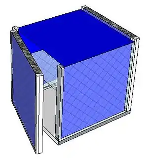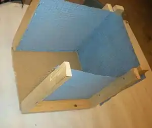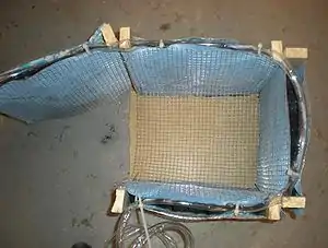 The device should now look like this.- Place cloth or woven reids across the top of the box and fasten it in place.