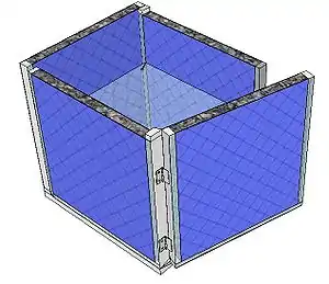 - Choose dimensions (length, width, and height) and cut wood. The device requires 2 pieces of each the length and width, and 8 of the height.