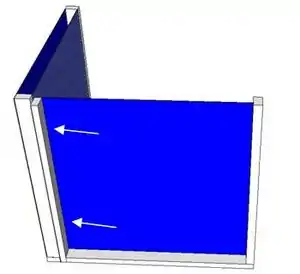 Sides 2 and 3 of the cooler have the same heat transfer rate, however unlike side 1 the rate of heat transfer is dependent on more than the rate of evaporation. Figure 4 shows a schematic of the side wall as viewed from the top.