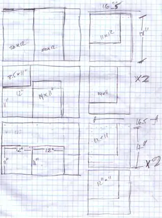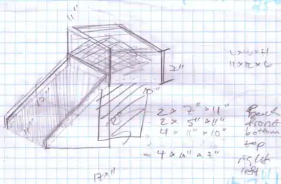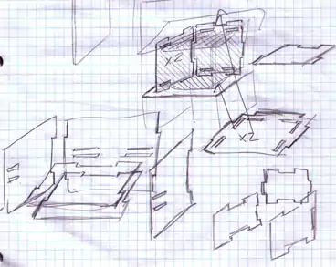 The design from the Internet was adapted to fit the materials I had. Also depicted is the sketch that inspired the interlocking mechanism that allowed me to insulate the solar collector and solar food dehydrator.