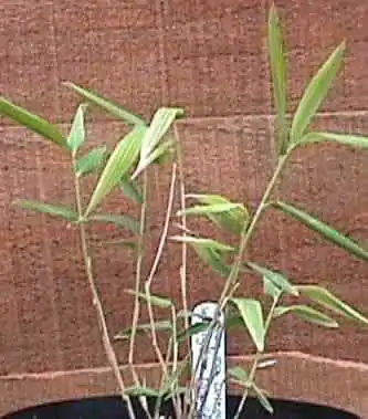 One of the more than 1000 species of bamboo. The pictured (juvenile) specimen is a Chillian species with thick yellow-green culms, producing clusters of small leafy branches. Grows up to 4 Metres.